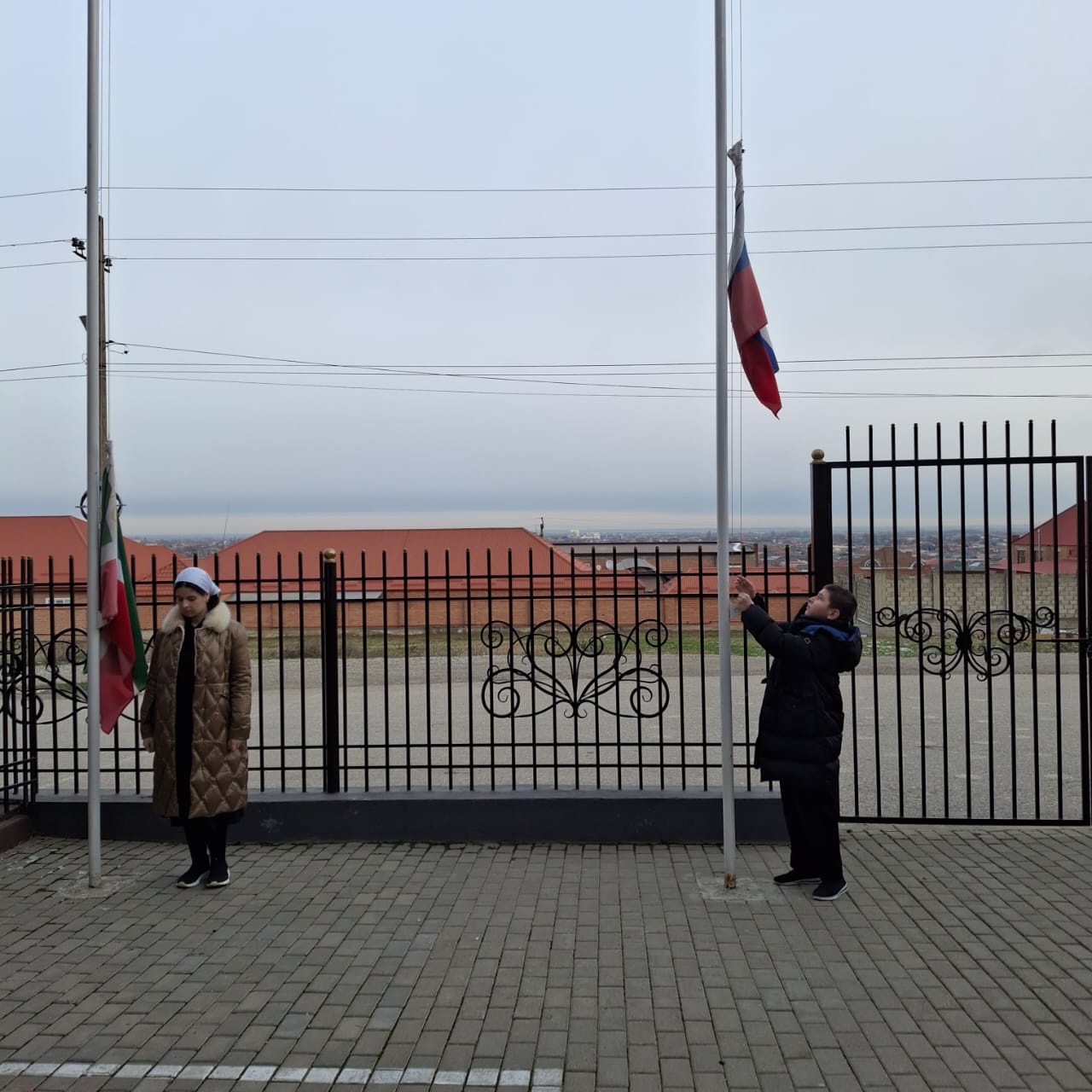 Поднятие флагов ЧР и РФ